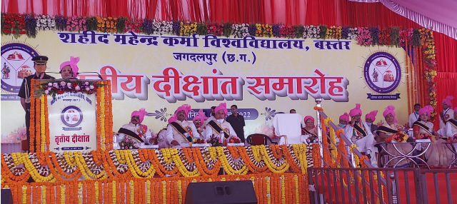 रायपुर , 7 मार्च।   राज्यपाल सुश्री अनुसूईया उइके आज बस्तर स्थित शहीद महेंद्र कर्मा विश्वविद्यालय के तीसरा दीक्षांत समारोह में शामिल हुई। राज्यपाल सह कुलाधिपति सुश्री अनुसुईया उइके द्वारा दीक्षांत के गरिमामयी अवसर पर 95 विद्यार्थियों को स्वर्ण पदक से सम्मानित किया गया। साथ ही वर्ष 2019-20 तथा 2020-21 में उत्तीर्ण स्नातक और स्नातकोत्तर के विद्यार्थियों को उपाधि प्रदान की गई।