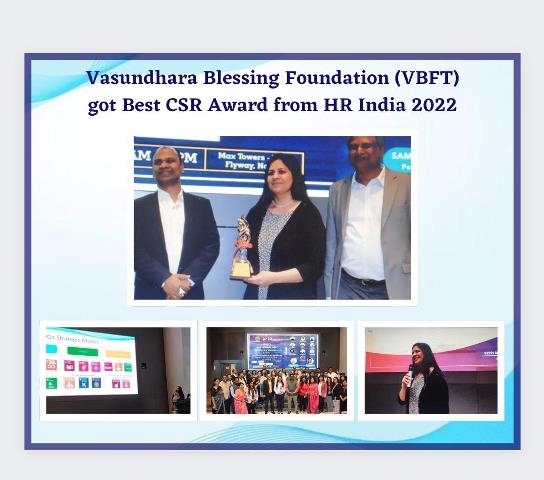 वसुंधरा ब्लेसिंग फाउंडेशन को एचआर इंडिया ने सीएसआर अवार्ड 2021-22 से किया सम्मानित