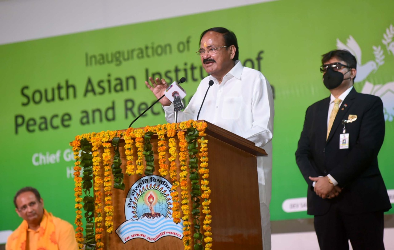 उपराष्ट्रपति आज गायत्री तीर्थ के स्वर्ण जयंती के अवसर पर हरिद्वार में साउथ एशिया इंस्टीट्यूट ऑफ पीस एंड रिकॉन्सिलिएशन के उद्घाटन के अवसर पर कार्यक्रम को संबोधित कर रहे थे।