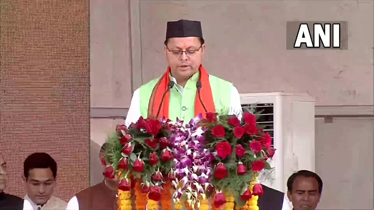 पीएम नरेंद्र मोदी, गृह मंत्री अमित शाह, भाजपा राष्ट्रीय अध्यक्ष जेपी नड्डा, यूपी सीएम योगी आदित्यनाथ सहित भाजपा शासित राज्यों के मुख्यमंत्री व कई वीवीआईपी की मौजूदगी में देहरादून स्थित परेड ग्राउंड में शपथ ग्रहण समारोह आयोजित किया गया। शपथ ग्रहण समारोह पहली बार राजभवन से निकलकर परेड ग्राउंड में आयोजित किया गया।