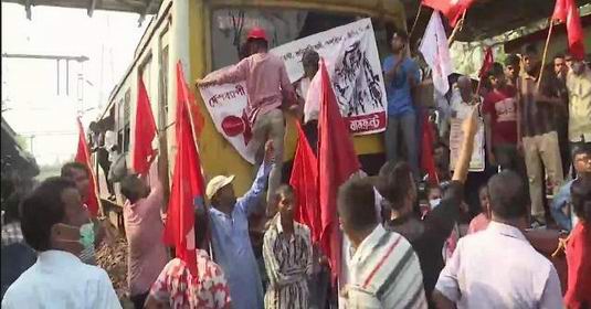 केंद्र सरकार की नीतियों के खिलाफ भारत बंद, केरल-बंगाल में दिखा भारत बंद का असर, कोलकाता में रेलवे ट्रैक को किया ब्लाक