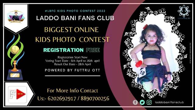 पटना , 1 अप्रैल। सामाजिक कार्यों में अग्रणी ” लाड्डो बानी फैन्स क्लब ” इस बार एक्टिंग एंड मॉडलिंग में हुनर रखने वाले बच्चों को प्रोत्साहित करने जा रहा है। जिसके लिए नेशनल लेवल #LBFC एलबीफसी ऑनलाइन फोटो कॉन्टेस्ट रखा गया है। जिसमें भाग लेने के लिए 3 से 13 साल तक के बच्चे डिटेल्स व फोटो व्हाट्सप्प नंबर 6202692917 / 8890700256 पर भेज कर भाग ले सकते हैं। भाग लेने वाले बच्चों के लिए कोई रजिस्ट्रेशन फीस नहीं रखी गई है यह पूर्णतया निशुल्क ऑनलाइन फोटो कांटेस्ट है।