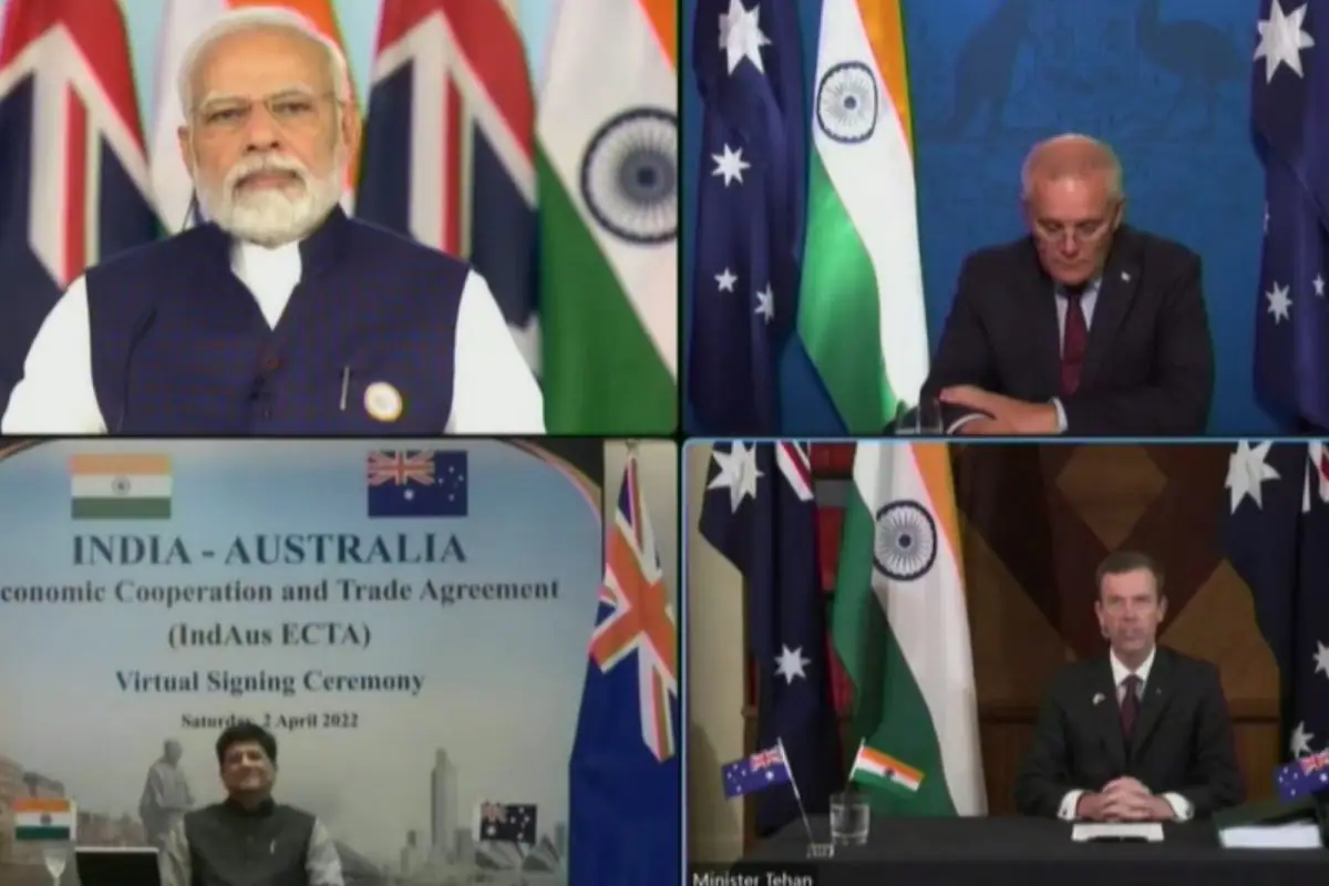 वाणिज्य एवं उद्योग मंत्री पीयूष गोयल और ऑस्ट्रेलिया के व्यापार, पर्यटन और निवेश मंत्री डेन तेहान ने एक ऑनलाइन समारोह में भारत-ऑस्ट्रेलिया आर्थिक सहयोग एवं व्यापार समझौते पर दस्तखत किए। इस अवसर पर प्रधानमंत्री नरेंद्र मोदी और उनके ऑस्ट्रेलियाई समकक्ष स्कॉट मॉरीसन भी मौजूद थे।