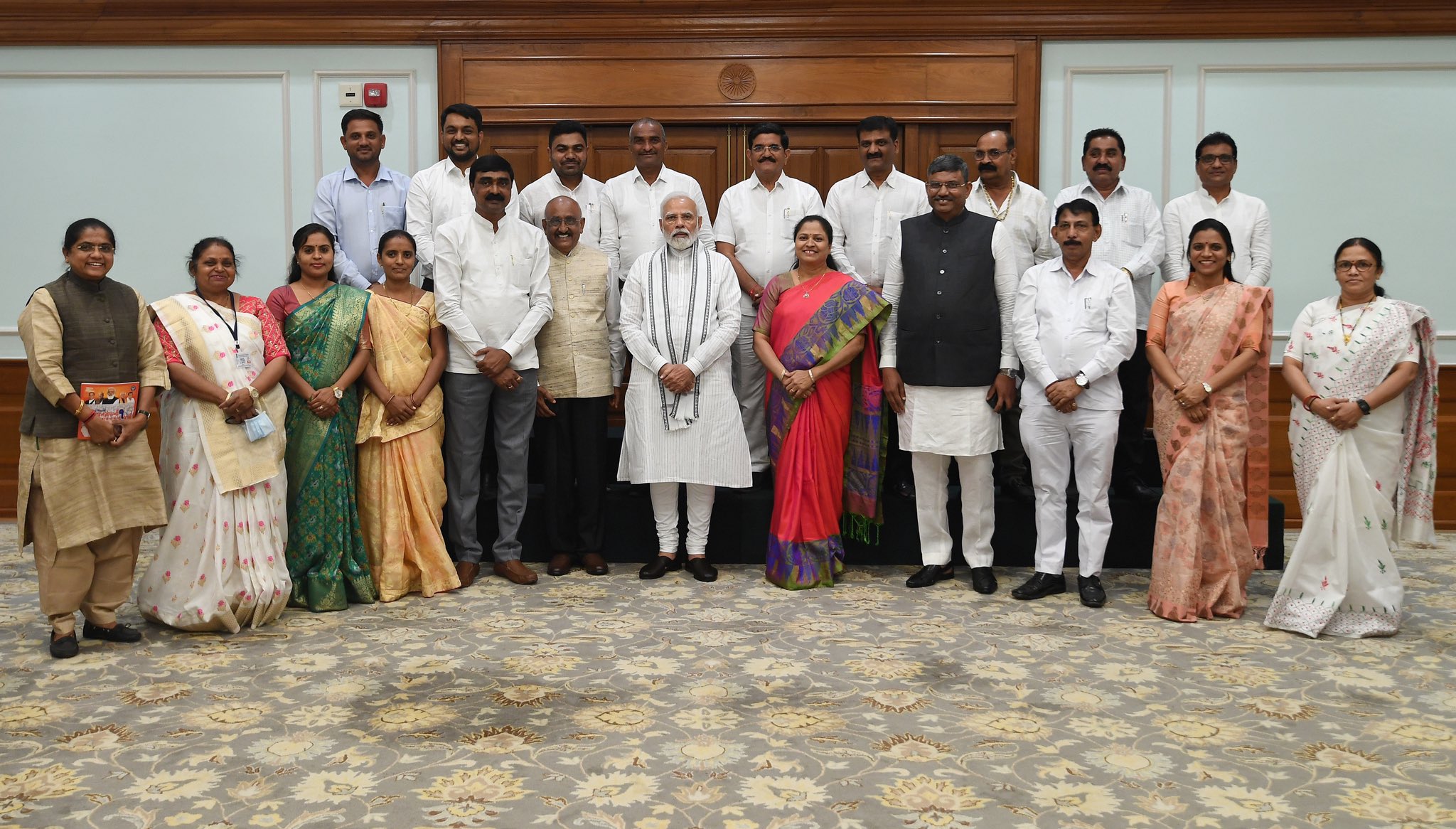 Yesterday, had an excellent meeting with District Panchayat members from Gujarat. We talked at length about issues relating to rural development and leveraging Jan Shakti for societal progress. pic.twitter.com/HOZafnZRlB