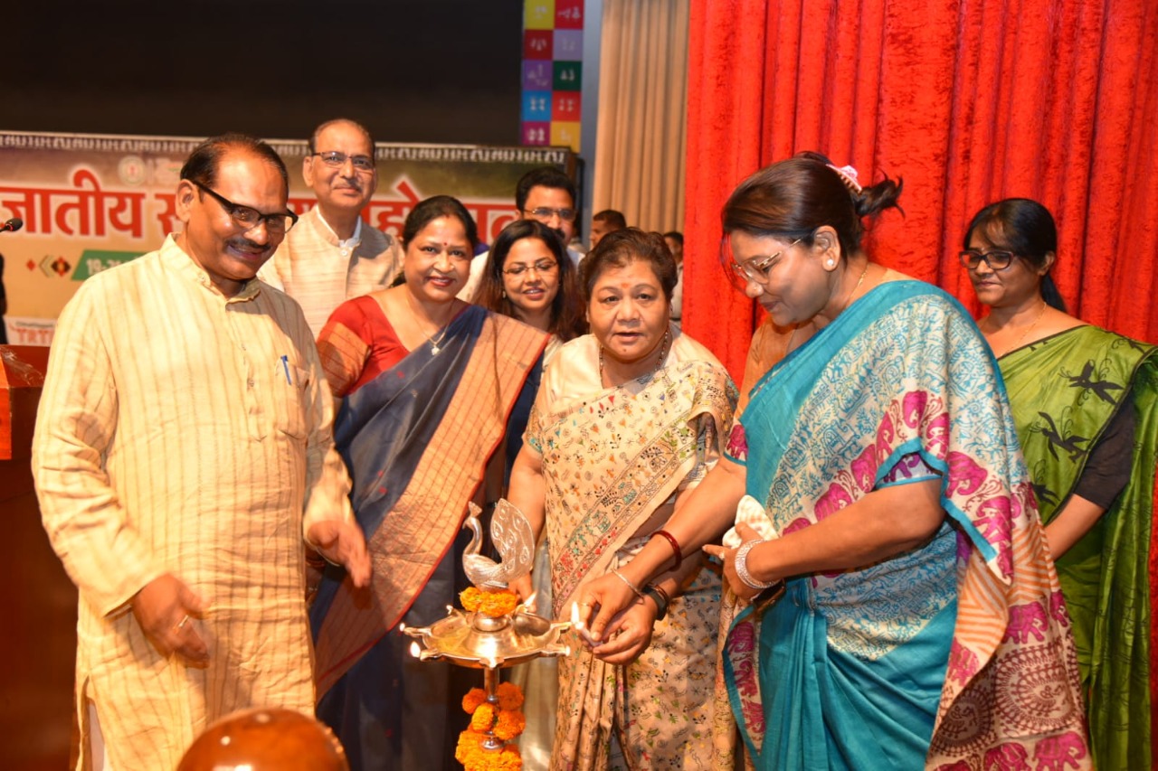 रायपुर, 23अप्रैल। राज्यपाल सुश्री अनुसुईया उइके आज रायपुर के पंडित दीनदयाल उपाध्याय ऑडिटोरियम में आयोजित राष्ट्रीय जनजातीय साहित्य महोत्सव के समापन समारोह में शामिल हुई। इस अवसर पर केन्द्रीय जनजातीय राज्य मंत्री श्रीमती रेणुका सिंह, आदिम जाति तथा अनुसूचित जाति विकास मंत्री डॉ. प्रेमसाय सिंह टेकाम, संसदीय सचिव श्री द्वारिकाधीश यादव एवं विधायक श्रीमती लक्ष्मी ध्रुव उपस्थित थे।