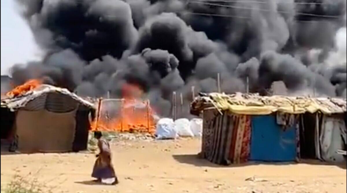 तेज आंधी के दौरान इन झुग्गियों में आग लगी