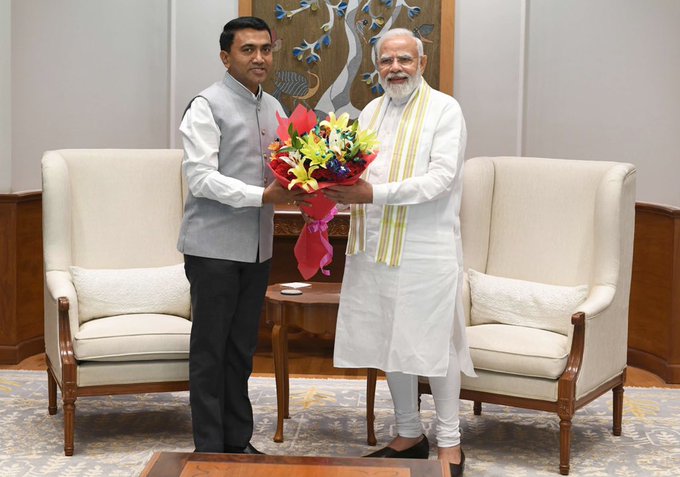 प्रधानमंत्री कार्यालय ने ट्वीट किया, ‘गोवा के मुख्यमंत्री @डॉप्रमोदपीसावंत ने प्रधानमंत्री @नरेन्द्र मोदी से भेंट की।’