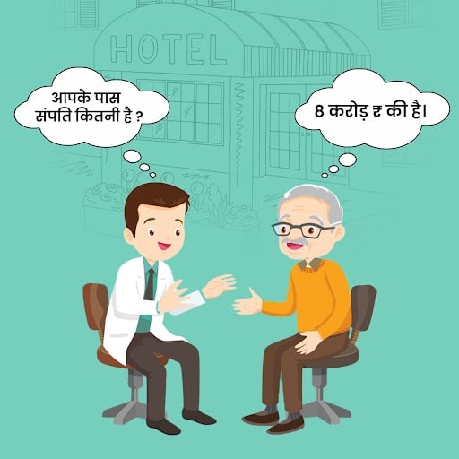 डॉक्टर : क्या आपको कभी ऐसा नहीं लगता है कि ये संपति बेच कर मैं मजे की जिंदगी जीऊँ? अगर मेरी राय मानो तो ये प्लॉट 8 करोड़ में बेच कर 4 करोड़ की दूसरी संपति खरीद लो और बाकी के चार करोड़ खर्च करो।