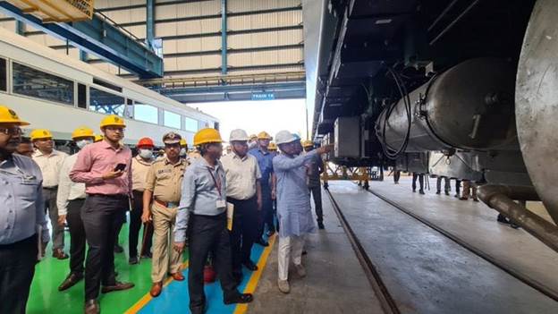केंद्रीय रेल मंत्री अश्विनी वैष्णव ने वंदे भारत रेलगाड़ियों के निर्माण कार्य का किया निरीक्षण किया