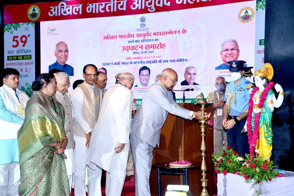 नई दिल्ली, 30मई। राष्ट्रपति राम नाथ कोविंद ने 29 मई मध्य प्रदेश के उज्जैन में अखिल भारतीय आयुर्वेद महासम्मेलन के 59वें महाधिवेशन का उद्घाटन किया। इस अवसर पर उन्होंने उज्जैन में राजकीय आयुर्वेद चिकित्सा महाविद्यालय के नए भवन का भी वर्चुअल माध्यम से उद्घाटन किया।