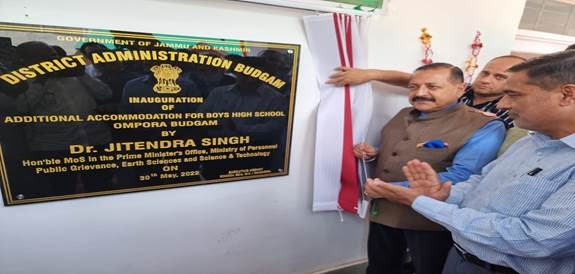 बडगाम, 31मई। केन्द्रीय राज्यमंत्री (स्वतंत्र प्रभार) विज्ञान एवं प्रौद्योगिकी मंत्रालय; राज्यमंत्री (स्वतंत्र प्रभार) पृथ्वी विज्ञान मंत्रालय; प्रधानमंत्री कार्यालय और कार्मिक, लोक शिकायत एवं पेंशन, अणु ऊर्जा तथा अंतरिक्ष मंत्रालय के राज्यमंत्री डॉ. जितेंद्र सिंह ने आज बडगाम के ओमपोरा में डिजिटलीकृत प्रणाली से लैस स्मार्ट क्लास की सुविधा वाले हाल ही में पूर्ण रूप से उन्नत बॉयज हाई स्कूल के भवन का उद्घाटन किया।