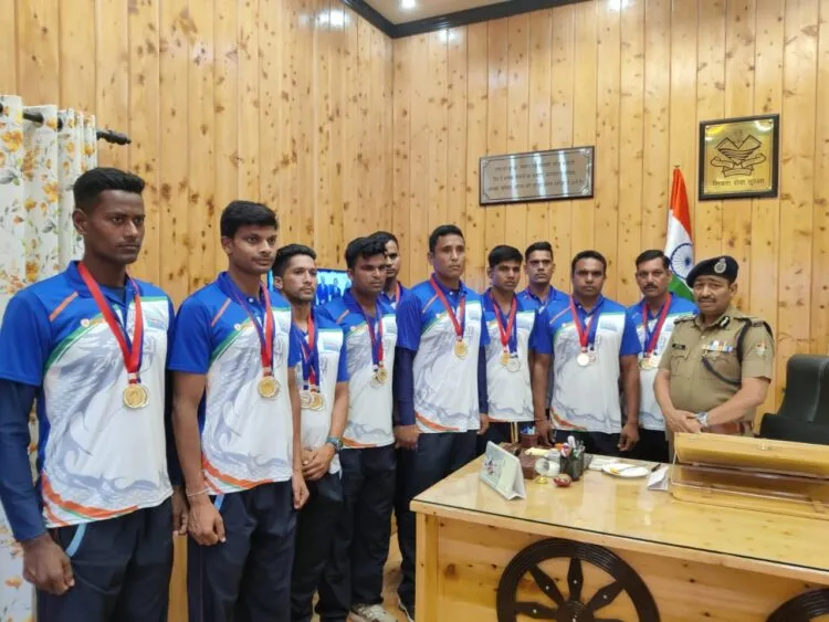 देहरादून, 2जून। पुलिस मुख्यालय उत्तराखण्ड, देहरादून में पुलिस महानिदेशक उत्तराखण्ड अशोक कुमार ने 10th नेशनल ड्रेगन बोर्ड चैम्पियनशिप में पदक प्राप्त खिलाड़ियों से मिलकर उन्हें शुभकामनाएं देते हुये भविष्य में होने वाली प्रतियोगिताओं के लिए कड़ी मेहनत व लगन से अभ्यास करने व स्वर्ण पदक प्राप्त करने हेतु प्रेरित किया। 17 मई, 2022 से 22 मई, 2022 तक भोपाल, मध्य प्रदेश में आयोजित हुई10th नेशनल ड्रेगन बोर्ड चैम्पियनशिप में उत्तराखण्ड पुलिस के खिलाड़ियों ने बहतरीन खेल का प्रदर्शन करते हुए पुरूष 500 मीटर स्पर्धा में स्वर्ण पदक, पुरूष 2000 मीटर स्पर्धा में रजत पदक एवं मिश्रित 2000 मीटर स्पर्धा में रजत पदक अर्जित कर प्रदेश का मान बढ़ाया है।