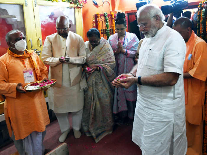 राष्ट्रपति कोविंद ने प्रधानमंत्री मोदी के साथ पथरी माता मंदिर और मिलन केंद्र का किया दौरा