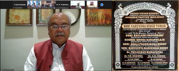 नई दिल्ली, 10जून। भारतीय कृषि अनुसंधान परिषद के अंतर्गत केंद्रीय तम्बाकू अनुसंधान संस्थान से सम्बद्ध कृषि विज्ञान केंद्र (केवीके), कन्दुकुर (जिला प्रकाशम, आंध्र प्रदेश) के प्रशासनिक भवन का उद्घाटन केंद्रीय कृषि एवं किसान कल्याण मंत्री श्री नरेंद्र सिंह तोमर ने किया। वर्ष 2012 में स्थापित यह केवीके देश के 731 केवीके में से एक है, जिसके कार्यात्मक अधिकार क्षेत्र के अंतर्गत प्रकाशम व नल्लौर जिले के 28 मंडल आते हैं। इस अवसर पर श्री तोमर ने कहा कि सभी केवीके कृषि जगत की रीढ़ के समान है, जिन पर किसानों को बहुत भरोसा है। इसे कायम रखते हुए केवीके वक्त की जरूरत समझकर अपनी गति बढ़ाएं और कृषि क्षेत्र के साथ ही देश आजादी के अमृत महोत्सव के इस शुभ अवसर पर न्यू इंडिया के निर्माण में अपना योगदान दें।