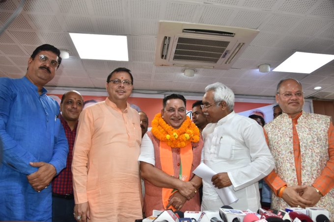 Uttarakhand | Deepak Bali, who was the state president of the Aam Aadmi Party, today joined the BJP in the presence of Chief Minister Pushkar Singh Dhami at the state BJP office in Dehradun pic.twitter.com/6KxlIxn3tg