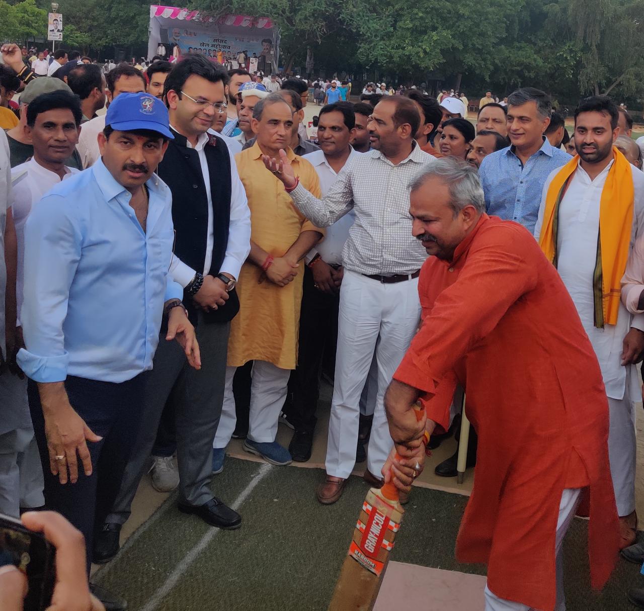नई दिल्ली, 6जुलाई। उत्तर पूर्वी दिल्ली के सांसद मनोज तिवारी ने 5 जुलाई से खेल महोत्सव की शुरुआत की। इसका आयोजन डिस्ट्रिक्ट पार्क नंद नगरी के खेल के मैदान किया जा रहा है। प्रतियोगिता का शुभारंभ भाजपा के प्रदेश अध्यक्ष आदेश गुप्ता ने सांसद रमेश बिधूडी डीडीसीए के अध्यक्ष रोहन जेटली की उपस्थिति में किया गया। इस अवसर पर जिला अध्यक्ष मास्टर विनोद कुमार मोहन गोयल भाजपा नेता नीलकांत बक्शी नीरज गुप्ता प्रमोद गुप्ता कैलाश जैन विधायक अजय महावर जितेंद्र महाजन जिला महामंत्री डॉ यूके चौधरी मनोज त्यागी पूर्व पार्षद प्रवेश शर्मा रीना माहेश्वरी पुनीत शर्मा कमल क्लब के पदाधिकारी चौधरी सुग्रीव सिंह अश्वनी शर्मा गंगाराम माहोर आरडी शर्मा वीरेंद्र खंडेलवाल नंद नगरी के मंडल अध्यक्ष शेर बहादुर सभी टीमों के संयोजक एवं आयोजन समिति के पदाधिकारी सहित कई गणमान्य लोग मौजूद रहे।
