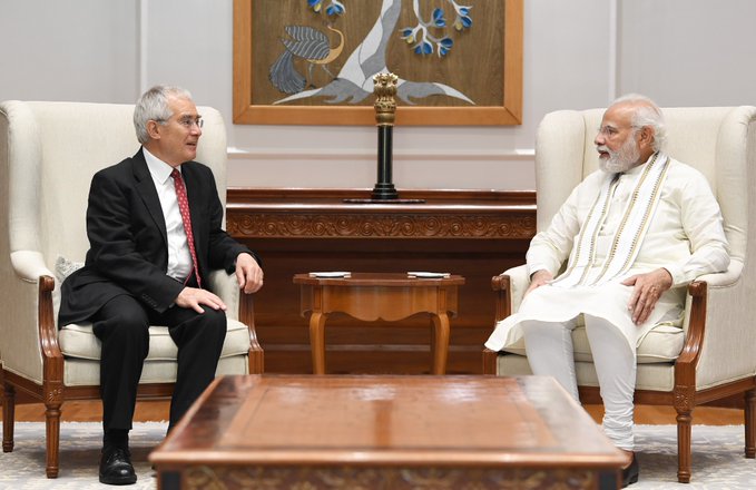 “लॉर्ड निकोलस स्टर्न से मिलकर और विभिन्न मुद्दों पर चर्चा करके खुश हूं। पर्यावरण के प्रति उनका जुनून और नीति संबंधी मुद्दों की बारीक समझ सराहनीय है। वे भारत के प्रति आशावादी भी हैं और 130 करोड़ भारतीयों के कौशल पर भरोसा करते हैं।”