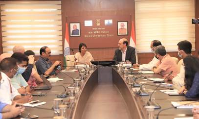 नई दिल्ली, 14जुलाई। नोबेल पुरस्कार विजेता प्रोफेसर माइकल क्रेमर ने बुधवार सचिव श्रीमती विनी महाजन और पेयजल एवं स्वच्छता विभाग, स्वास्थ्य एवं परिवार कल्याण मंत्रालय, यूनिसेफ के वरिष्ठ अधिकारियों और अन्य क्षेत्र के भागीदारों के साथ अंत्योदय भवन में बातचीत की।