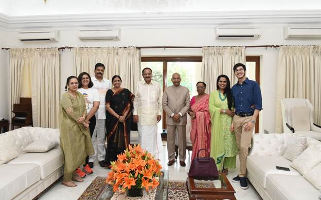 नई दिल्ली, 24जुलाई। उपराष्ट्रपति एम. वेंकैया नायडू ने शनिवार को नई दिल्ली में उप-राष्ट्रपति निवास में राष्ट्रपति राम नाथ कोविंद और उनके परिवार के सदस्यों की दोपहर के भोजन में मेजबानी की।