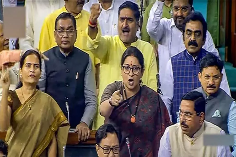 नई दिल्ली, 28 जुलाई। केंद्रीय मंत्री स्मृति ईरानी ने गुरुवार को लोकसभा में मौजूद कांग्रेस की अंतरिम अध्यक्ष सोनिया गांधी की आलोचना की और कहा कि उन्होंने कांग्रेस के पुरुष नेताओं को एक मोहरा बनाया है ताकि वे राष्ट्रपति द्रौपदी मुर्मू को अपमानित कर सकें। वित्त मंत्री निर्मला सीतारमण ने राज्यसभा में सोनिया गांधी से माफी की मांग की।