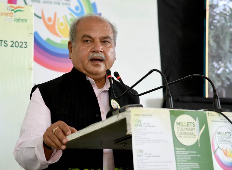 तोमर ने कहा, आईसीएआर-आईआईएमआर, आईएचएम (पूसा) और आईएफसीए के सहयोग से आयोजित इस महोत्सव में मुख्य अतिथि श्री तोमर ने कहा कि मिलेट गरीबों का भोजन है, यह कहकर इसे त्याज्य नहीं करना चाहिए, बल्कि इसे भारत द्वारा पूरे विश्व में फैलाए गए योग और आयुर्वेद के महत्व की तरह प्रचारित-प्रसारित किया जाना चाहिए क्योंकि स्वास्थ्य की दृष्टि से यह अत्यंत महत्वपूर्ण है। भारत मिलेट की फसलों और उनके उत्पादों का अग्रणी उत्पादक और उपभोक्ता है। “मिलेट के सेवन और इससे होने वाले स्वास्थ्य लाभों के बारे में जागरूकता फैलाने के लिए मैं इस प्रकार अन्य अनेक आयोजनों की अपेक्षा करता हूं,”।