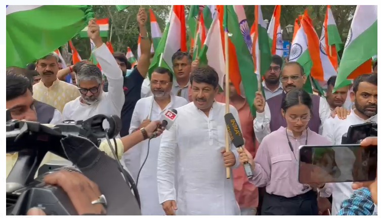 दिल्ली के करीब 300 लोगों के साथ तिरंगा प्रभार फेरी में शामिल हुए भाजपा सांसद मनोज तिवारी