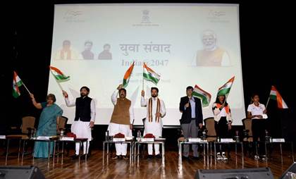 धर्मेंद्र प्रधान और श्री अनुराग ठाकुर ने 'आजादी का अमृत महोत्सव' के अंतर्गत नई दिल्ली में युवा संवाद "इंडिया@2047" कार्यक्रम को संबोधित किया