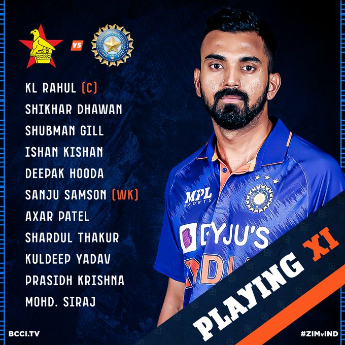भारत (प्लेइंग इलेवन): शिखर धवन, शुभमन गिल, ईशान किशन, केएल राहुल (कप्तान), दीपक हुड्डा, संजू सैमसन (विकेटकीपर), अक्षर पटेल, शार्दुल ठाकुर, कुलदीप यादव, प्रसिद्ध कृष्णा, मोहम्मद सिराज