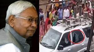 Patna | Stones pelted at the convoy of Bihar CM Nitish Kumar; CM was not present in the convoy at the time of the incident. pic.twitter.com/5kNnn7IDlv