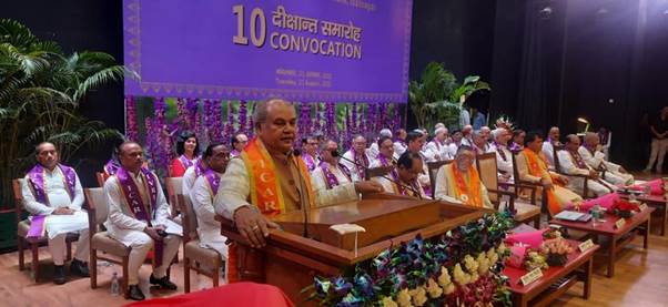 केंद्रीय मंत्री तोमर ने दीक्षांत समारोह में उपाधियां प्राप्त करने वालों को बधाई देते हुए कहा कि युवाओं के विकास में शिक्षण संस्थानों की महत्वपूर्ण भूमिका होती है, श्रेष्ठ विद्या प्राप्त करके विद्यार्थियों को गौरव का अनुभव होता है।