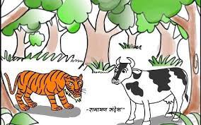 💦🌸एक गाय घास चरने के लिए एक जंगल में चली गई। शाम ढलने के करीब थी। उसने देखा कि एक बाघ उसकी तरफ दबे पांव बढ़ रहा है।