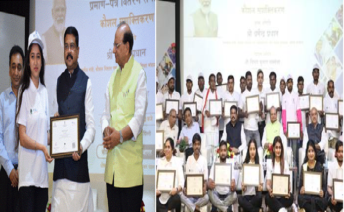 नई दिल्ली, 27अगस्त। केंद्रीय शिक्षा और कौशल विकास मंत्री धर्मेन्द्र प्रधान ने विनय कुमार सक्सेना के साथ दिल्ली में पूर्व शिक्षण (आरपीएल) की मान्यता कार्यक्रम को पूरा करने के लिए एनडीएमसी कर्मचारियों को प्रमाण पत्र प्रदान किए। इस अवसर पर दिल्ली के मुख्य सचिव श्री नरेश कुमार, एमएसडीई के सचिव श्री राजेश अग्रवाल, एनडीएमसी के अध्यक्ष श्री भूपिंदर सिंह भल्ला, एनएसडीसी के सीओओ श्री वेद मणि तिवारी और अन्य अधिकारी भी मौजूद थे।