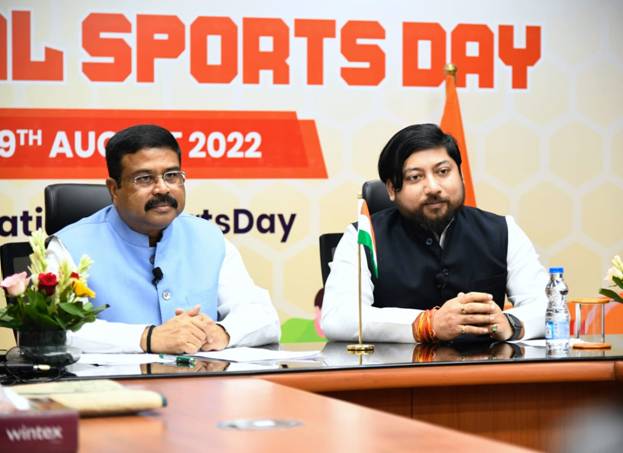 नई दिल्ली, 30अगस्त। राष्ट्रीय खेल दिवस के देशव्यापी समारोह में सोमवार को केन्द्रीय शिक्षा एवं कौशल विकास मंत्री धर्मेन्द्र प्रधान, केन्द्रीय युवा मामले एवं खेल मंत्री अनुराग सिंह ठाकुर तथा युवा मामले एवं खेल राज्य मंत्री निशीथ प्रमाणिक ने एथलीटों और फिटनेस आइकन से बातचीत की।