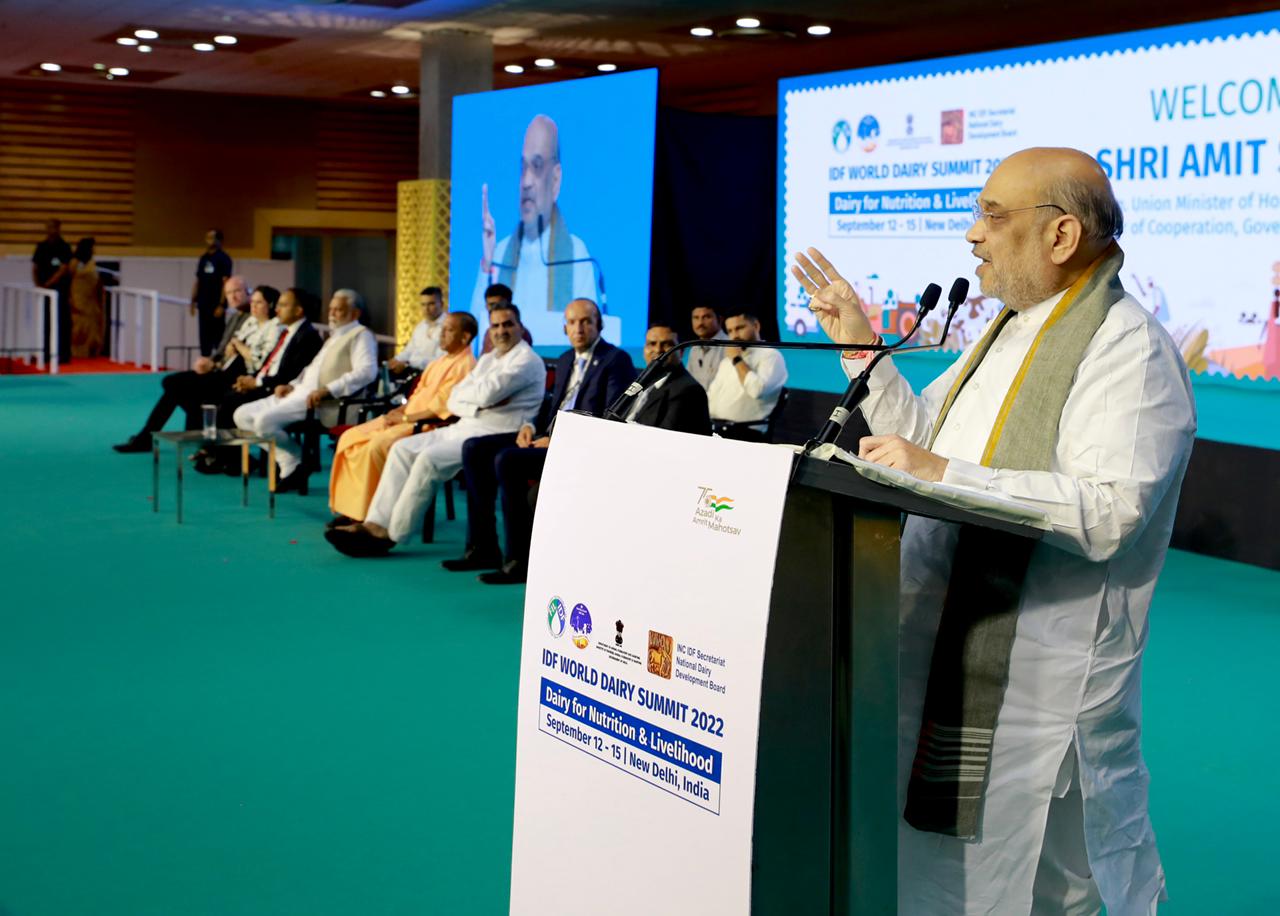नई दिल्ली, 13सितंबर। केन्द्रीय गृह एवं सहकारिता मंत्री अमित शाह ने सोमवार को उत्तर प्रदेश के ग्रेटर नोएडा में ‘डेयरी क्षेत्र के लिए सहकारी संस्थानों की प्रासंगिकता’ विषय पर विश्व डेयरी शिखर सम्मेलन-2022 में को संबोधित किया। गृहमंत्री ने कहा कि प्रधानमंत्री नरेन्द्र मोदी जी ने विश्व डेयरी शिखर सम्मेलन-2022 का उद्घाटन किया और 1974 के बाद आज पहली बार अंतर्राष्ट्रीय डेयरी फ़ेडरेशन के डेयरी शिखर सम्मेलन का आयोजन भारत में हो रहा है।