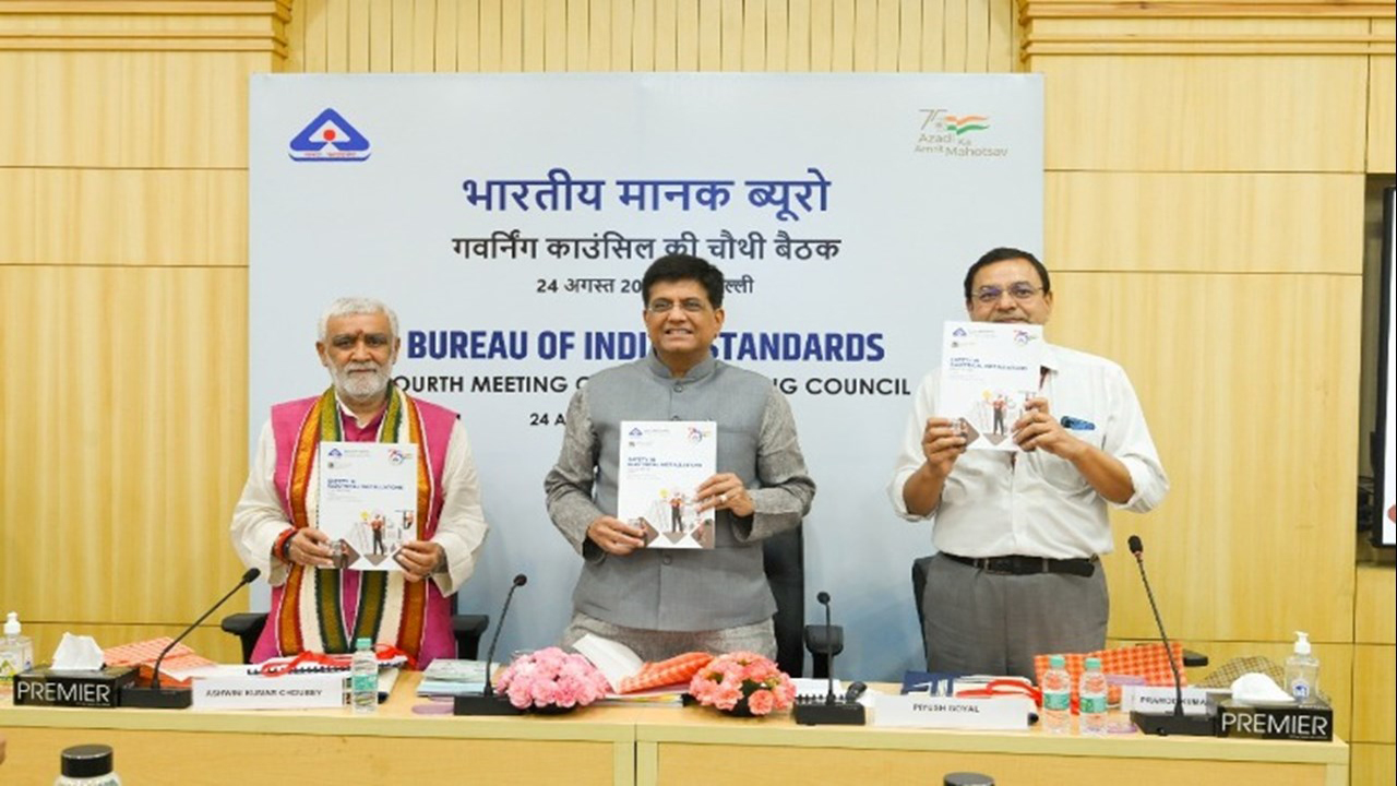 नई दिल्ली, 13सितबंर। केन्द्रीय वाणिज्य और कपड़ा मंत्री पीयूष गोयल ने भारतीय मानक ब्यूरो (बीआईएस) की चौथी गवर्निंग काउंसिल की बैठक के दौरान, हाल ही में ” विद्यत संस्थानों में सुरक्षा – भारतीय राष्ट्रीय विद्युत संहिता द्वारा सुरक्षा का सर्वश्रेष्ठ विकल्प” विषय पर पुस्तिका और भारतीय राष्ट्रीय भवन संहिता 2016 का उपयोग करने के लिए गाइड जारी की। इन दो महत्वपूर्ण दस्तावेजों के साथ, अपने घर का निर्माण करते समय या बिल्डरों से घर खरीदते समय अपने अधिकारों और कर्तव्यों के बारे में जागरूकता पैदा करने के लिए आम जनता के लिए तीन प्रचार पुस्तिकाएं भी तैयार की गई हैं।