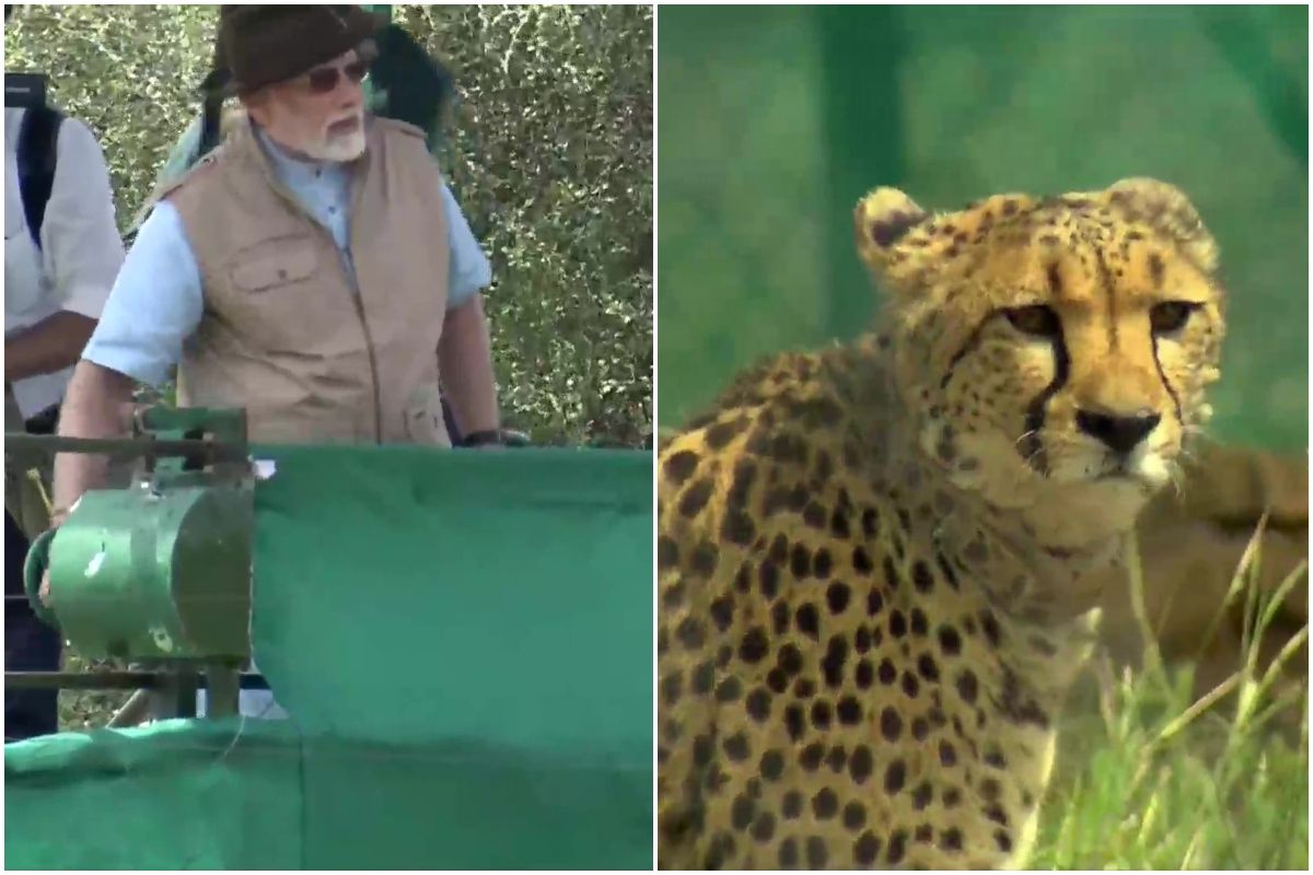 नई दिल्ली, 17सितंबर। प्रधानमंत्री नरेंद्र मोदी ने मध्यप्रदेश के कुनो राष्ट्रीय उद्यान में बने विशेष बाड़े में नामीबिया से हवाई मार्ग से लाए गए चीतों को छोड़ा, इसके बाद उन्होंने खुद अपने कैमरे से कुछ तस्वीरें भी क्लिक कीं.बताते चलें कि भारत में इस जानवर के विलुप्त होने के 70 सालों के बाद चीते लाए गए हैं. बोइंग के एक विशेष विमान ने कल रात को अफ्रीकी देश से उड़ान भरी थी और वह लकड़ी के बने खास तरीके बॉक्स में चीतों को लेकर करीब 10 घंटे की यात्रा के बाद भारत पहुंचा. चीतों को लाने के लिए विमान में खास इंतजाम किए गए थे. एक अधिकारी ने बताया कि विमान सुबह आठ बजे से कुछ देर पहले ही ग्वालियर हवाई अड्डे पर उतरा, इसके बाद इन्हें हेलिकॉप्टर की मदद से नेशनल पार्क तक पहुंचाया गया.