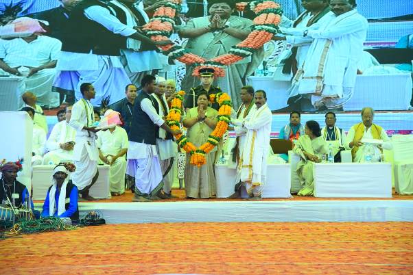 राज्यपाल ने कहा कि आदिवासी संस्कृति , कला, नृत्य-संगीत की प्रशंसा आज देश दुनिया के लोग कर रहे हैं। अपनी संस्कृति को बढ़ावा देने के लिए यह एक प्रशंसनीय कार्य है। उन्होंने कहा कि भारत के संविधान में समाज के विकास के लिए कई व्यवस्थाएं की गई हैं। 5वीं अनसूची में विशेष कानून पेसा के तहत ग्रामसभा को कई अधिकार दिए गए हैं। लेकिन आज भी समाज मूलभूत समस्याओं से जूझ रहा है। राज्यपाल सुश्री उइके ने समाज के विकास के लिए केंद्र और राज्य सरकार के माध्यम से अपनी प्रयासों को विस्तार पूर्वक रेखांकित किया। साथ ही उन्होंने सभा को अवगत कराया कि मात्रात्मक त्रुटि की वजह से लाभ से वंचित 12 जनजातियों को केंद्र सरकार के निर्णय से अब अपनी जाति का लाभ मिलेगा। पेसा कानून के लिए छत्तीसगढ़ शासन ने नियम बनाकर कानून का रूप दिया है। समाज द्वारा आवश्यक संशोधन हेतु पहल करने का भी सुझाव दिया गया है। राज्यपाल ने समाज के लोगों से राज्य और केंद्र सरकार की योजनाओं का उठाने का आह्वान किया। राज्यपाल सुश्री उइके ने धार्मिक सद्भावनाआं पर जोर देते हुए कहा कि देश मे अन्य धर्माें की भांति गांेड़ी धर्म को भी मान्यता मिलना चाहिए। इससे पूर्व उन्होंने कार्यक्रम स्थल पर स्थापित चिल्हीडार पर पुष्प अर्पित किया।