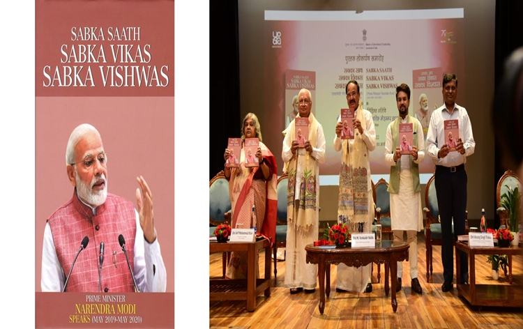 नई दिल्ली, 23सितंबर। प्रधानमंत्री नरेन्‍द्र मोदी के चुनिन्‍दा भाषणों पर पुस्‍तक का विमोचन आज नई दिल्‍ली में आकाशवाणी भवन में किया गया। इस पुस्‍तक का नाम है- सबका साथ, सबका विकास, सबका विश्‍वास-प्राइम मिनिस्‍टर नरेन्‍द्र मोदी स्‍पीक्‍स। पुस्‍तक में नये भारत के बारे में प्रधानमंत्री का दृष्टिकोण प्रस्‍तुत किया गया है। पूर्व उपराष्‍ट्रपति एम वेंकैया नायडू, केरल के राज्‍यपाल आरिफ मोहम्‍मद खान तथा सूचना और प्रसारण मंत्री अनुराग ठाकुर ने इस पुस्‍तक का विमोचन किया।