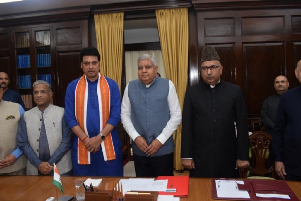 नई दिल्ली, 28सितंबर। राज्य सभा के सभापति जगदीप धनखड़ ने आज अपने कक्ष में राज्य सभा के नवनिर्वाचित सदस्य बिप्लब कुमार देब और राज्य सभा के नाम-निर्देशित सदस्य गुलाम अली को शपथ दिलाई। बिप्लब कुमार देब, डॉ. माणिक साहा के त्यागपत्र के कारण उत्पन्न हुई आकस्मिक रिक्ति को भरने के लिए त्रिपुरा राज्य से उपचुनाव में निर्वाचित हुए हैं।