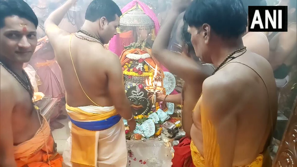 #WATCH मध्य प्रदेश: नरक चतुर्दशी के अवसर पर उज्जैन के महाकालेश्वर मंदिर में विशेष आरती की गई। pic.twitter.com/gJ2mxV374M