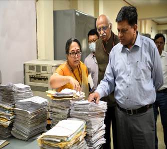 श्री चन्द्रा ने कार्यालय के विभिन्न तलों का जायजा लिया, जिसमें लेखा अनुभाग के विभिन्न अभिलेख कक्ष भी शामिल हैं, जिन्हें इस विशेष अभियान के दौरान उन पुराने भुगतान किए गए बिलों, जो दस साल से अधिक समय से पड़े हुए हैं, को हटाने के लिए चिन्हित किया गया है। अधिकारियों ने सचिव (सूचना और प्रसारण) को पुराने रिकॉर्ड को नष्ट करने और जगह खाली करने के कार्य में हुई प्रगति के बारे में बताया। वर्ष 2017-18 से पहले के रिकॉर्ड को सूचीबद्ध किया गया है और उन्हें नष्ट करने के लिए चुना गया है। 50 प्रतिशत से अधिक काम पहले ही पूरा किया जा चुका है। टीम को छंटाई किए गए बिल को रखने और बिल को नष्ट करने के लिए निर्धारित कमरे भी दिखाए गए। सचिव (सूचना और प्रसारण) ने किए गए कार्य के पैमाने और खाली की गई जगह पर संतोष व्यक्त किया। उम्मीद है कि इस विशेष अभियान के हिस्से के रूप में बिल, आईटी कचरे और अखबार की पुरानी नमूना प्रतियों की सफाई के बाद 2500 वर्ग फुट की जगह खाली हो जाएगी।