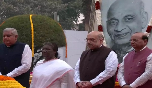 नई दिल्ली, 31अक्टूबऱ। राष्ट्रपति द्रौपदी मुर्मु, उपराष्ट्रपति जगदीप धनखड़, केंद्रीय गृह एवं सहकारिता मंत्री अमित शाह और दिल्ली के उपराज्यपाल विनय कुमार सक्सेना ने सरदार वल्लभभाई पटेल की जयंती पर नई दिल्ली में लौहपुरुष सरदार पटेल को पुष्पांजलि अर्पित की।