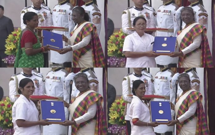 नई दिल्ली, 7नवंबर। राष्ट्रपति द्रौपदी मुर्मु ने आज राष्ट्रपति भवन में नर्सिंग पेशेवरों को वर्ष 2021 के लिए राष्ट्रीय फ्लोरेंस नाइटिंगेल पुरस्कार प्रदान किए।