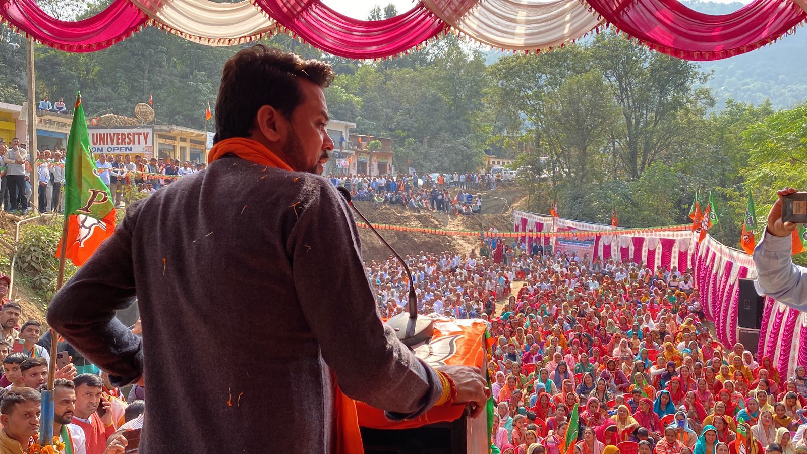 अनुराग ठाकुर ने कहा “ बिलासपुर के हक़ को छीनने का काम कांग्रेस ने किया है।हम केंद्र से बड़े बड़े प्रोजेक्ट मंज़ूर करवाते रहे मगर जब हमारी डबल इंजन की सरकार नहीं थी तो कांग्रेस ने विकास के प्रोजेक्टों को रुकवाने का काम किया। हम हिमाचल प्रदेश के लिए 1470 करोड़ रुपये का एम्स का प्रोजेक्ट लेकर आएं लेकिन कांग्रेस ने हमें 4 सालों तक जमीन नहीं दी। साल 2010 में हिमाचल के युवाओं के लिए हम सेंट्रल यूनिवर्सिटी लेकर आए लेकिन कांग्रेस ने 8 सालों तक इसमें प्रशासनिक रुकावटें बनाये रखी। साल 2012 में हम लोग हाइड्रोकार्बन इंजीनियरिंग कॉलेज का प्रोजेक्ट मंजूर करवाया कांग्रेस ने इसे भी 7 सालों तक रोके रखा। ठीक इसी तर्ज पर हमने मेडिकल कॉलेज मंजूर करवाएं कांग्रेस ने चार 4 सालों तक हमें जमीन नहीं दी। साल 2014 में हम आईआईएम लेकर आएं कांग्रेस ने उसे भी रोके रखा। हमने लाने का काम किया और कांग्रेस ने रुकवाने का काम किया। हम विकास की राह पर चलते थे और ये लोग विरोध करते थे”