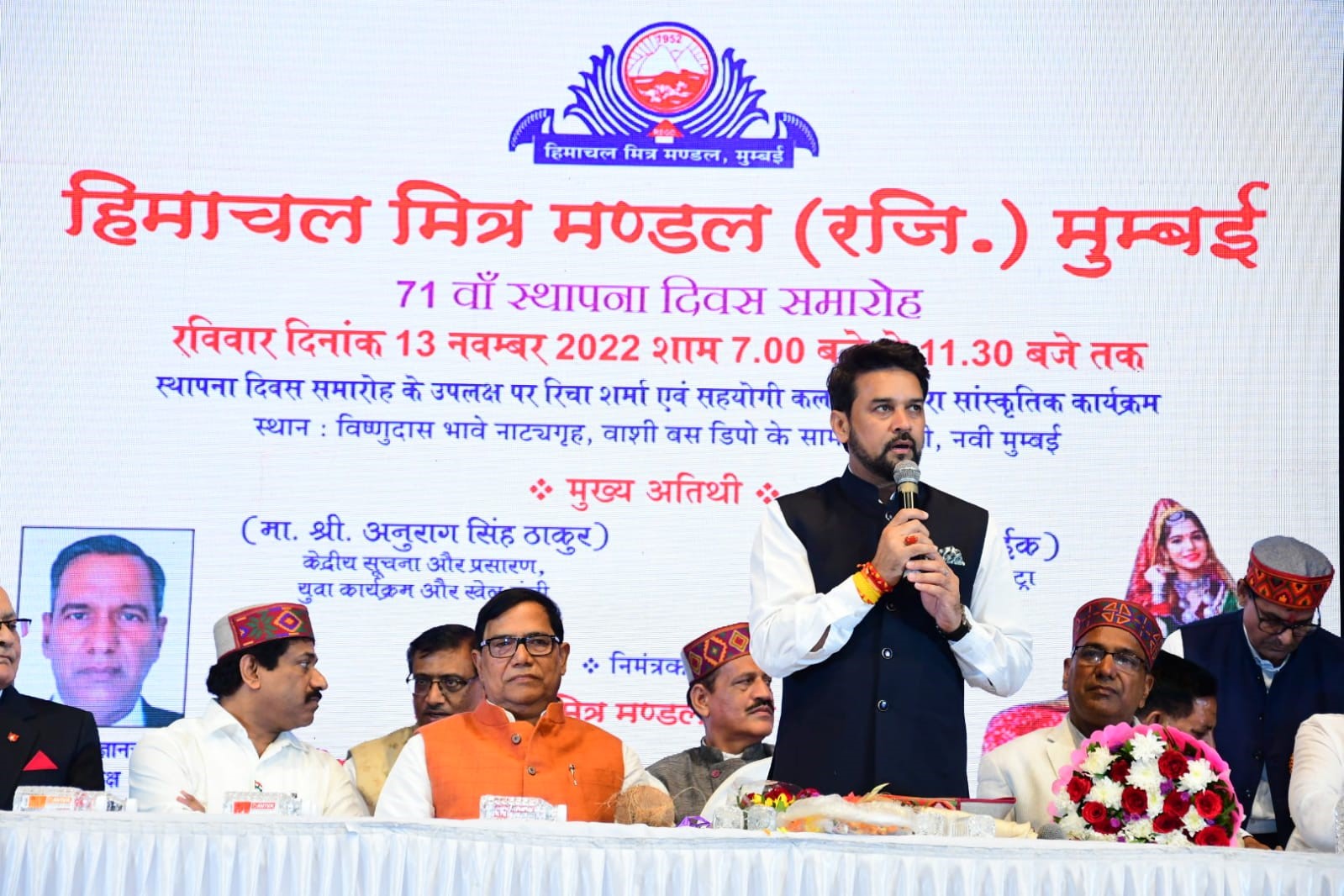 केंद्रीय मंत्री ठाकुर ने कल मुंबई में ‘हिमाचल मित्र मंडल’ के 71वें स्थापना दिवस समारोह में भाग लिया, जहां उन्होंने इस शहर में रहने वाले हिमाचल प्रदेश के लोगों को शुभकामनाएं दीं।