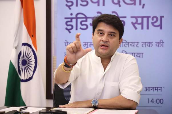 केन्द्रीय नागर विमानन मंत्री ज्योतिरादित्य सिंधिया ने ग्वालियर-मुंबई-ग्वालियर उड़ान का किया उद्घाटन