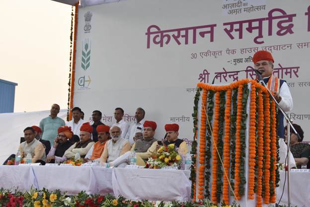 तोमर ने कहा कि हरियाणा खेती में अग्रणी राज्य है। यहां का किसान अच्छी अवस्था में है। पिछले 7 से 8 सालों में खेती में नवाचार हुए हैं। किसान और खेती को विकसित करने के लिए प्रयास हुए हैं। हरियाणा सरकार ने मोटा अनाज खरीद कर किसानों की मदद की है। उन्होंने कहा कि केंद्र सरकार और हरियाणा सरकार की नई-नई योजनाओं के परिणाम आने लगे हैं। उन्होंने हरियाणा के मुख्यमंत्री श्री मनोहर लाल व कृषि मंत्री श्री जे.पी. दलाल के कृषि क्षेत्र को लेकर उठाए जा रहे कदमों की तारीफ भी की।