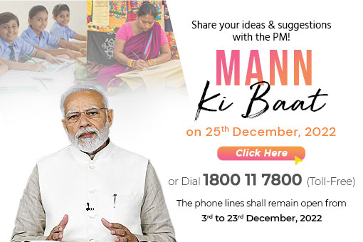 नई दिल्ली, 13दिसंबर। प्रधानमंत्री श्री नरेन्द्र मोदी ने 25 दिसंबर, 2022 को सुबह 11 बजे निर्धारित ‘मन की बात’ के आगामी एपिसोड हेतु लोगों को अपने इनपुट साझा करने के लिए आमंत्रित किया है। श्री मोदी ने लोगों से नमो ऐप, मायगॉव पर लिखने या 1800-11-7800 पर अपना संदेश रिकॉर्ड करने का आग्रह किया है।