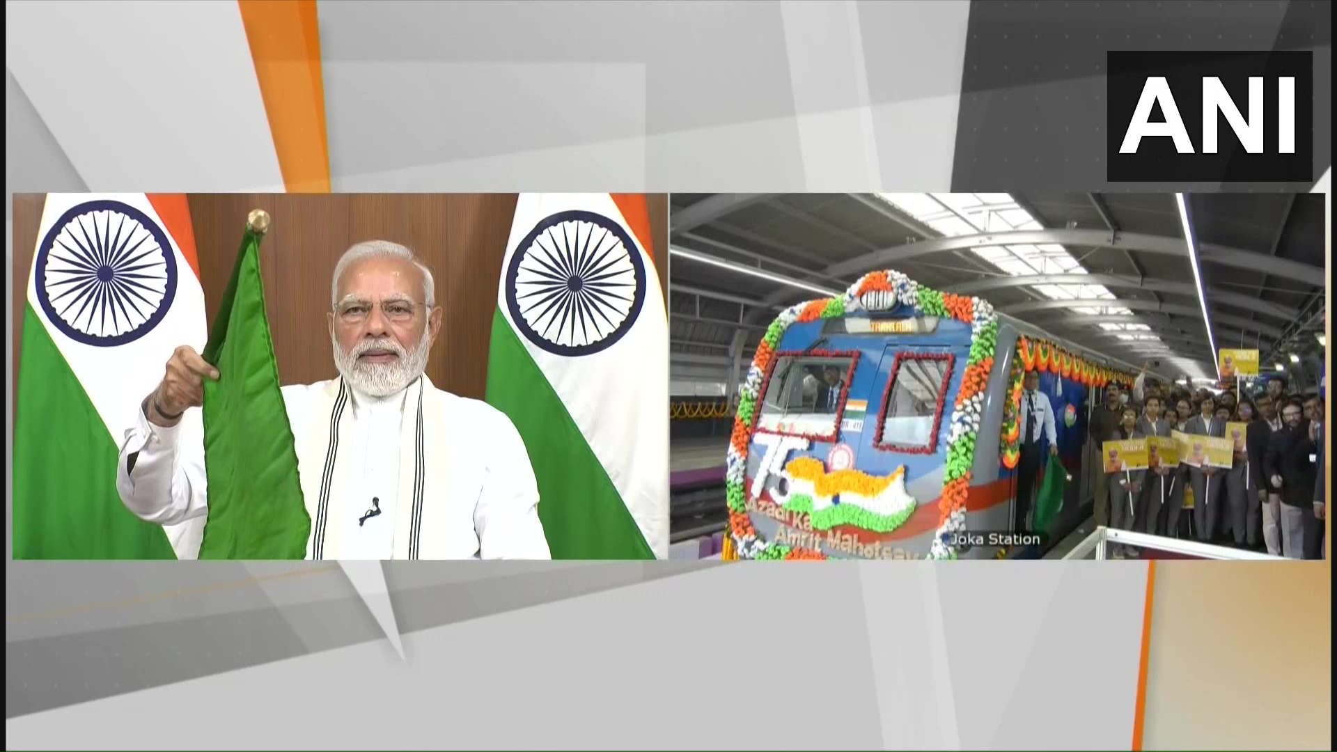 PM Modi inaugurates the Joka-Taratala stretch of the Purple Line of the Kolkata Metro through video conferencing. West Bengal CM Mamata Banerjee is present at the event.