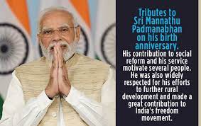 “श्री मन्नथु पद्मनाभन को उनकी जयंती पर श्रद्धांजलि। समाज सुधार में उनका योगदान और उनकी सेवा लोगों को प्रेरित करती है। ग्रामीण विकास को आगे बढ़ाने के उनके प्रयासों के लिए भी उनका व्यापक रूप से सम्मान किया जाता है। उन्होंने भारत के स्वतंत्रता आंदोलन में महत्वपूर्ण योगदान दिया।